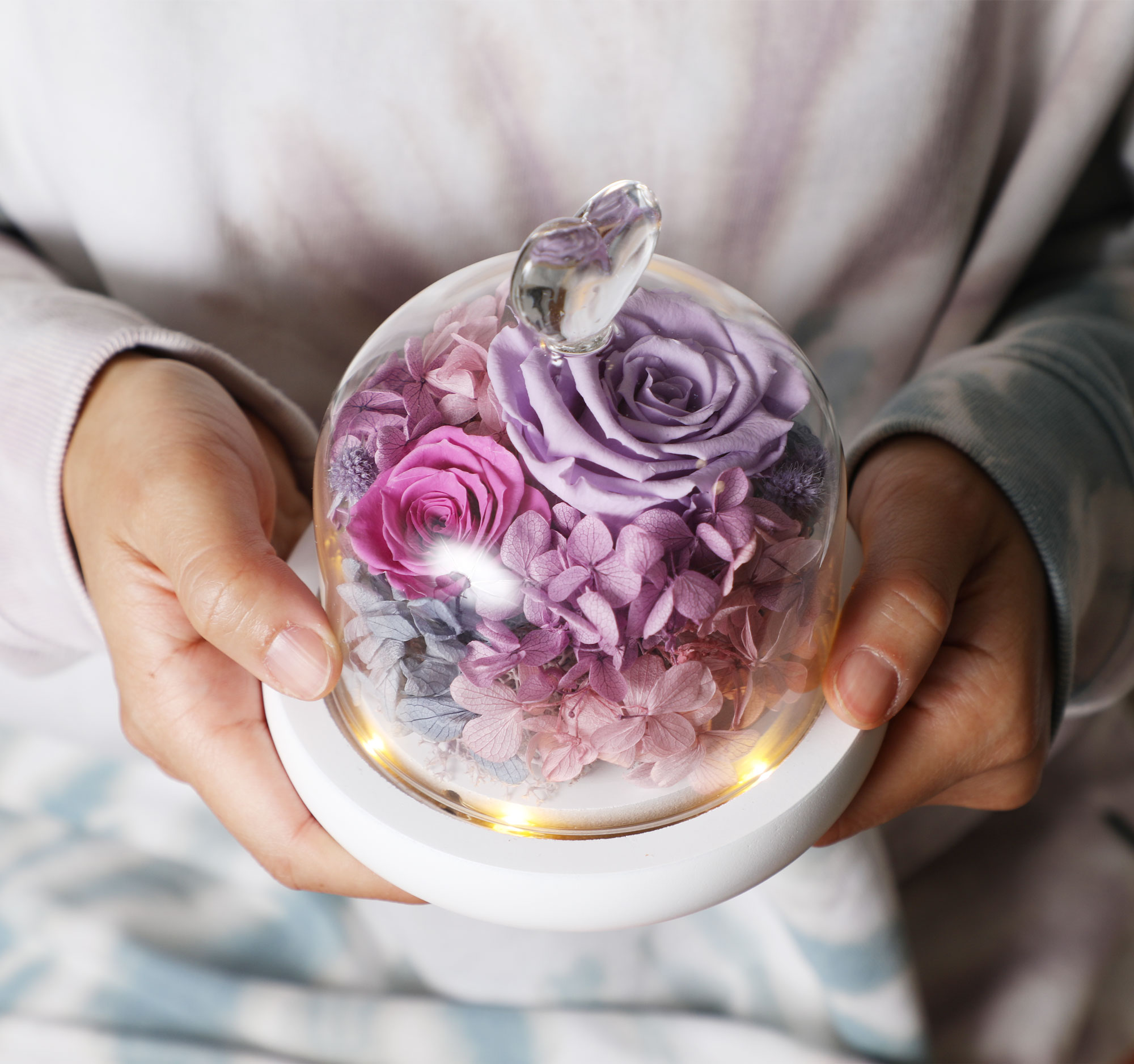 We hand pick and hand made all the eternal flower display with love. The flowers are designed by certified eternal flower instructor. We believe each flower is unique and we treat each finished product as an art piece.